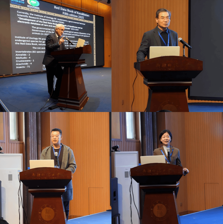 本次会议组织了特邀报告、青年学者报告及墙报展示等学术环节。在特邀报告部分,来自哈萨克斯坦教育科学部动物研究所的Roman Jashenko研究员、喀什大学/南开大学的李后魂教授、塔里木大学/东北林业大学的吴庆明教授、以及新疆师范大学的扈鸿霞教授,分别围绕动物多样性保护、昆虫协同进化、生物栖息地分布预测及微孢子虫对蝗虫致病性研究等前沿方向,与参会学者展开了深入交流。
