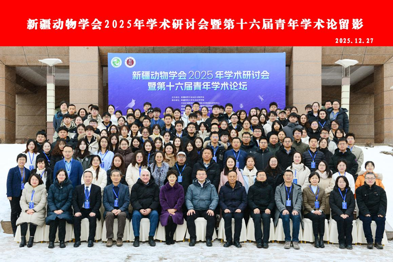 2025年12月26日至28日,新疆动物学会2025年学术研讨会暨第十六届青年学术论坛在新疆师范大学温泉校区顺利举行。本次会议由新疆动物学会主办,新疆师范大学生命科学学院、中亚区域跨境有害生物联合控制国际研究中心、塔城昆虫迁飞生物学新疆野外科学观测研究站、新疆特殊环境物种保护与调控生物学重点实验室、中国科学院新疆生态与地理研究所、新疆大学生命科学与技术学院等单位承办。